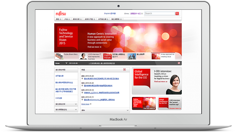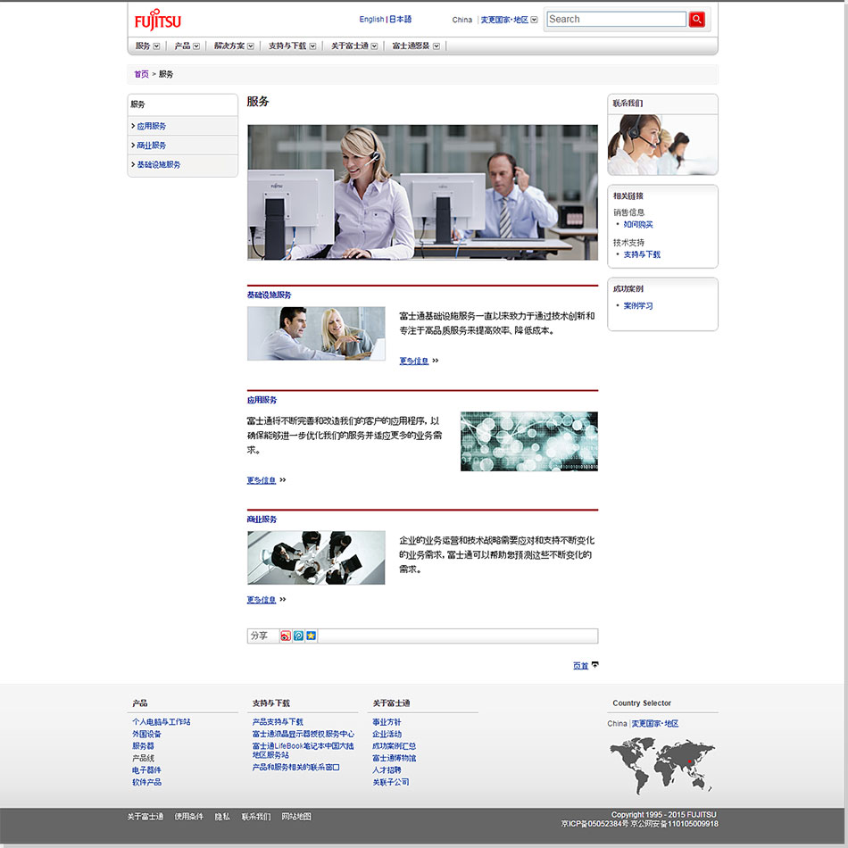 Fujitsu(富士通)公司于上世紀(jì)70年代進(jìn)入中國(guó),在計(jì)算機(jī)平臺(tái)產(chǎn)品、軟件與解決方案、通信、半導(dǎo)體以及高新技術(shù)的研究開發(fā)等領(lǐng)域與中國(guó)進(jìn)行合作并取得了豐碩的成果。于2007年起,富士通(中國(guó))信息系統(tǒng)有限公司與邁若網(wǎng)絡(luò)進(jìn)行了全方位的網(wǎng)絡(luò)合作。包括官網(wǎng)廣告,內(nèi)網(wǎng)搭建,網(wǎng)站維護(hù)等一系列的合作,邁若工作也同時(shí)獲得了富士通一致認(rèn)可。