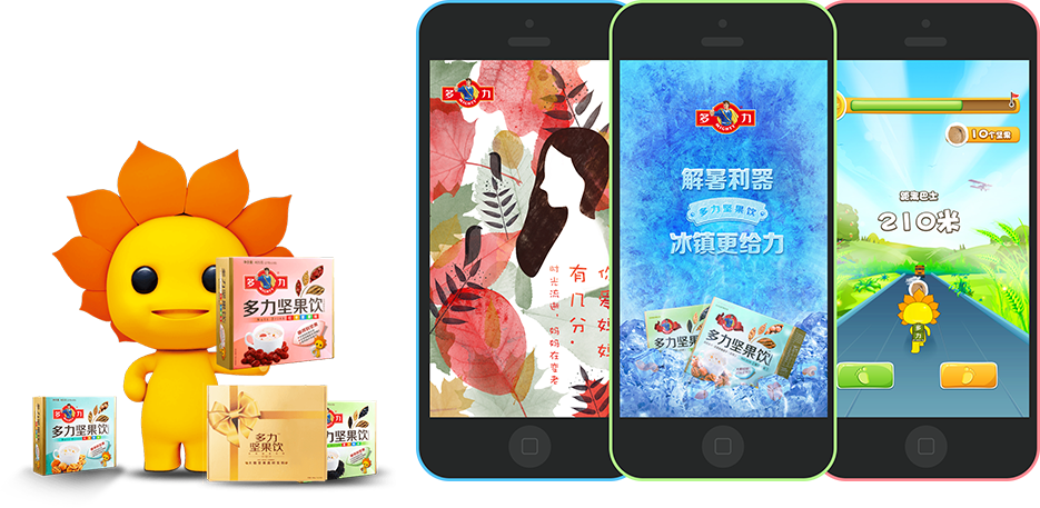 多力一直關(guān)注中國(guó)家庭的健康,幫助人們提高每一餐的營(yíng)養(yǎng)水平是我們的使命。“多力堅(jiān)果飲”主要定位健康早餐飲,響應(yīng)中國(guó)消費(fèi)者對(duì)營(yíng)養(yǎng)均衡的早餐需求。借助無(wú)線媒體和微信推廣優(yōu)勢(shì),從品牌定位、產(chǎn)品調(diào)性出發(fā),通過(guò)H5數(shù)字互動(dòng)營(yíng)銷(xiāo)方式,吸引消費(fèi)者對(duì)多力堅(jiān)果飲產(chǎn)品的關(guān)注
