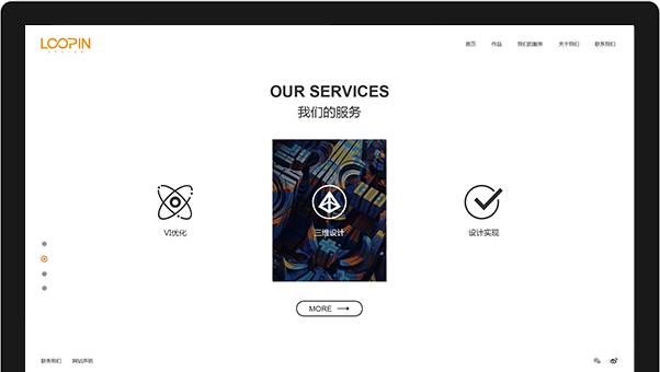 根據(jù)LOOPIN WAY的設(shè)計(jì)理念,將獨(dú)特的ICON形式結(jié)合簡單時(shí)尚的大屏設(shè)計(jì),整屏滾動式加載效果,讓網(wǎng)站在第一視覺上呈現(xiàn)給用戶高端、