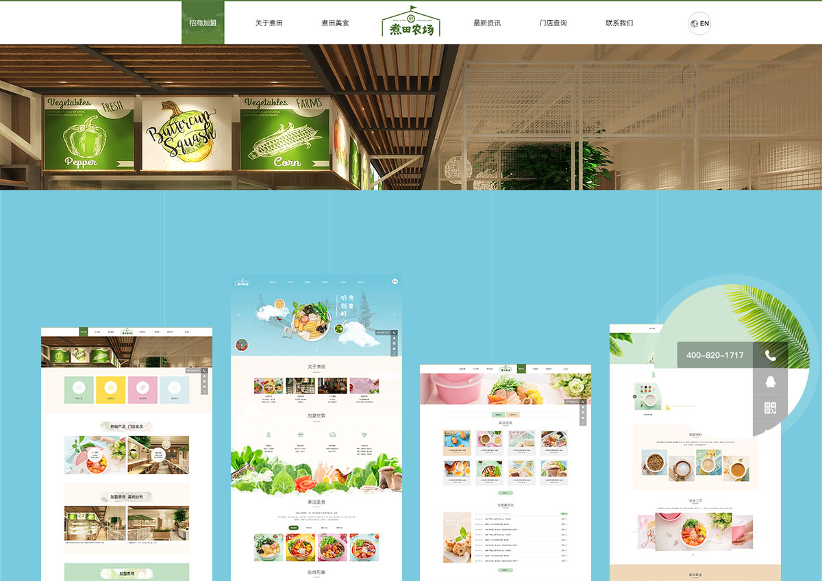 以“農(nóng)場(chǎng)”“新鮮”為創(chuàng)意設(shè)計(jì)靈感,將農(nóng)產(chǎn)品融入網(wǎng)頁(yè)背景中;以沉浸式的瀏覽體驗(yàn),將煮田農(nóng)場(chǎng)的產(chǎn)品特色、服務(wù)理念及加盟條件娓娓道來(lái),為瀏覽者帶來(lái)舒適、溫馨感,同時(shí)也完美闡釋煮田農(nóng)場(chǎng)的網(wǎng)絡(luò)形象。