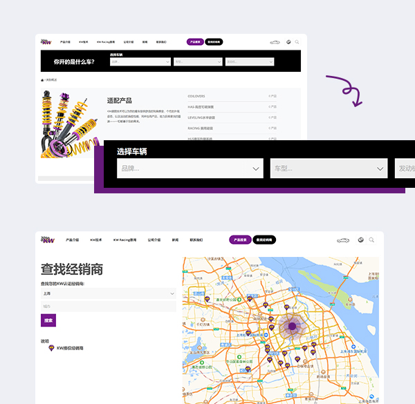 KW汽車全球性的知名度和高口碑讓KW成為個人改裝避震品牌的首選之一。作為面向全球客戶的公司,KW需要針對全球所有國家語言的多語言且統(tǒng)一風格版本的網(wǎng)站,中文網(wǎng)站改版與建設(shè)需要契合產(chǎn)品品牌屬性及產(chǎn)品基調(diào)。邁若從設(shè)計、動畫效果、用戶體驗等場景綜合為品牌打造一站式線上展現(xiàn)平臺。