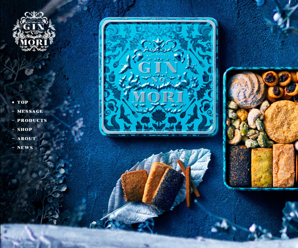 Ginnomori是一家制作堅(jiān)果、黃油類餅干的公司,網(wǎng)站“冰晶森林”大圖一貫到底,皇家標(biāo)志的logo無不