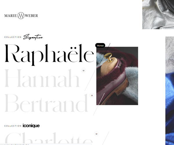 Marieweber是一家別樣皮鞋制作售賣的公司,頁面制作以設(shè)計產(chǎn)品為主,讓客戶一目了然,