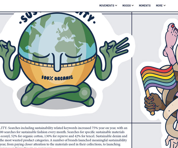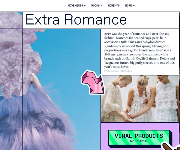 超過1.04億的搜索記錄,Lyst通過分析數(shù)據(jù)得出每年的流行趨勢,頁面的設計整體大氣