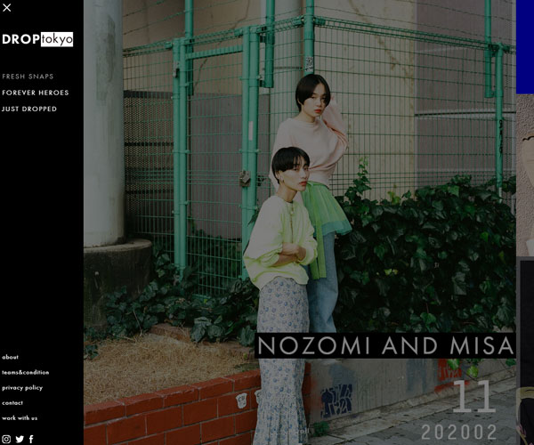 Droptokyo展示了不同設(shè)計(jì)的服裝,網(wǎng)站的排版方式十分獨(dú)特,左導(dǎo)航的展開方式,