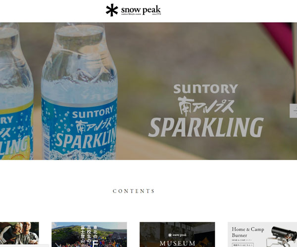 Snowpeak為客戶提供各類冬季野營相關(guān)項(xiàng)目,網(wǎng)站整體風(fēng)格較為簡潔,logo的精心設(shè)計(jì)與