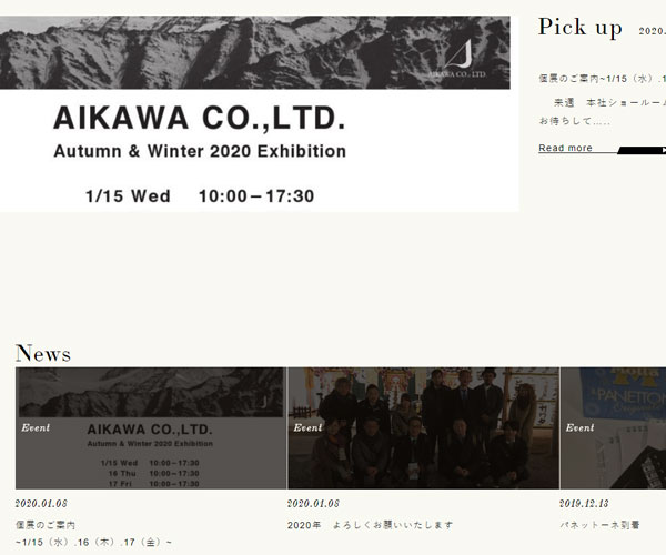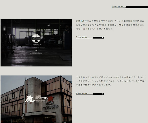 Aikawa提供精美的皮革,網(wǎng)站以精美的整屏圖片為基礎(chǔ),獨(dú)特的圖文排版形式