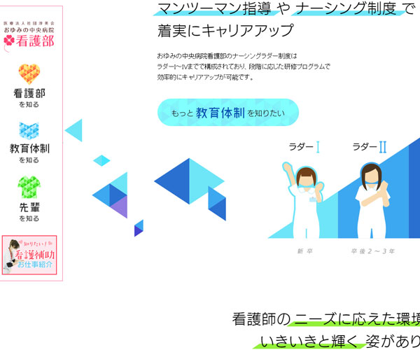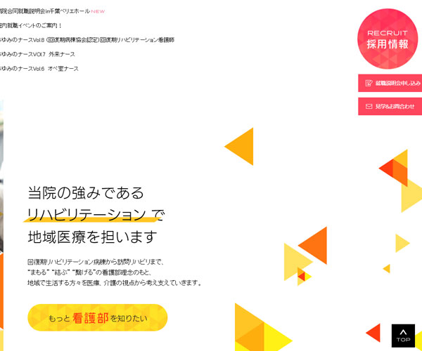 Oyumino是一家當(dāng)?shù)氐尼t(yī)療診所,網(wǎng)站以碎片化的多顏色三角片作為基礎(chǔ)建設(shè)網(wǎng)站,