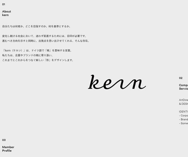 Kern是一個提供核心設(shè)計(jì)平臺的網(wǎng)站,低沉的灰色色調(diào),獨(dú)特的文字排版構(gòu)思,