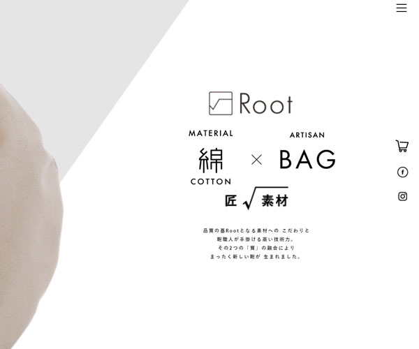 Root1887制作各式各樣的包包,網(wǎng)站的建設(shè)結(jié)合經(jīng)典的電商網(wǎng)站,外加特別的棱形切角