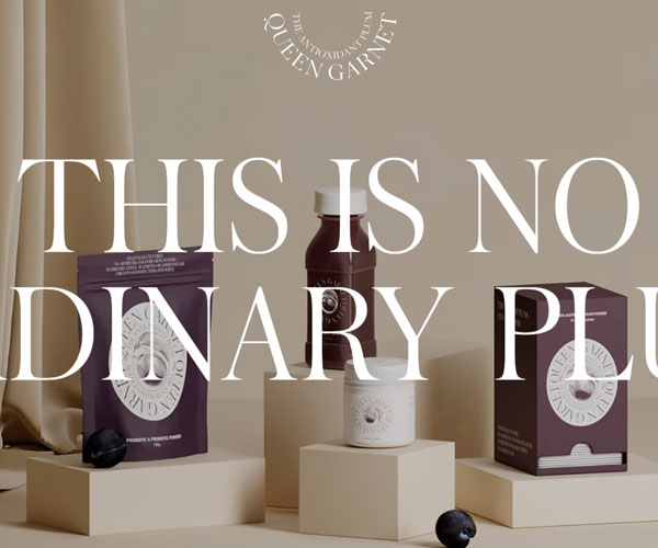 Queengarnet制作不同種類的藍莓果汁飲料,公司網(wǎng)站以藍莓色霸占,藍莓色的低沉格調(diào)