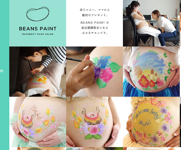 Beanspaint為孕婦畫人體彩繪,網(wǎng)站的整體建設(shè)風(fēng)格較為獨特,左導(dǎo)航的點擊式交互,一張張精美