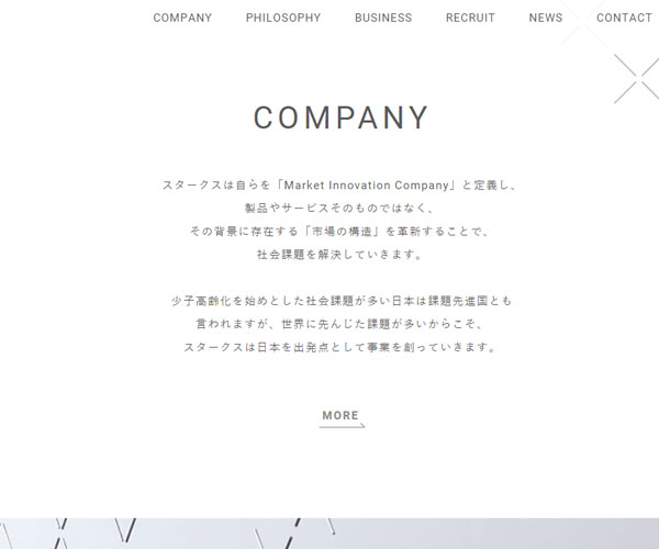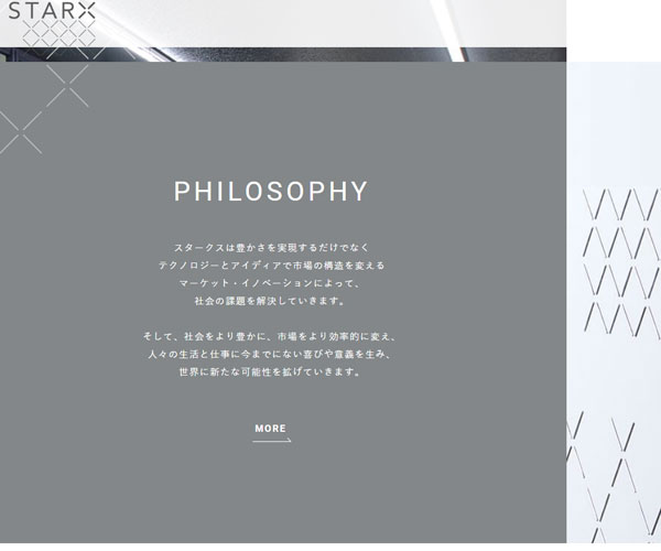 Starx把自己定義為市場(chǎng)創(chuàng)新的公司,網(wǎng)站整體的建設(shè)風(fēng)格通過(guò)公司獨(dú)特設(shè)計(jì)的logo來(lái)